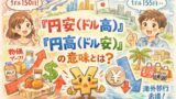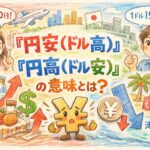 海外旅行やニュースで見かける「1ドル=○円」の意味を、円安・円高との違いも含めて初心者向けにやさしく解説します