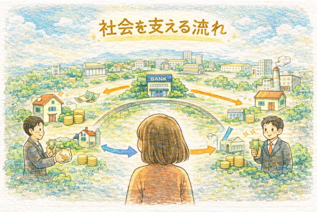 お金が社会の中でどう動いているかを、普段はあまり意識しないからです。
