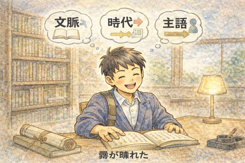 ① まず文脈を見る ② 次に時代を見る ③ 最後に“誰が誰に何をする言葉か”を確認する。