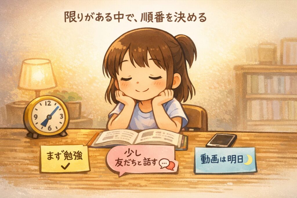 「今日は、限られた時間の中で、いちばん大事な順に選んだんだ。」