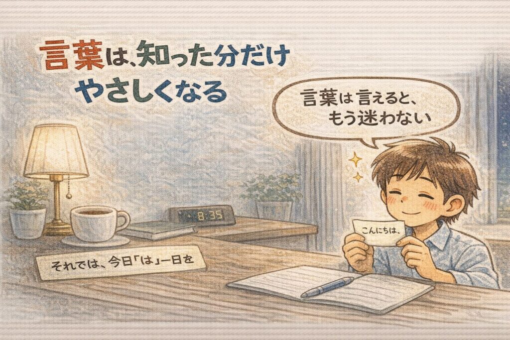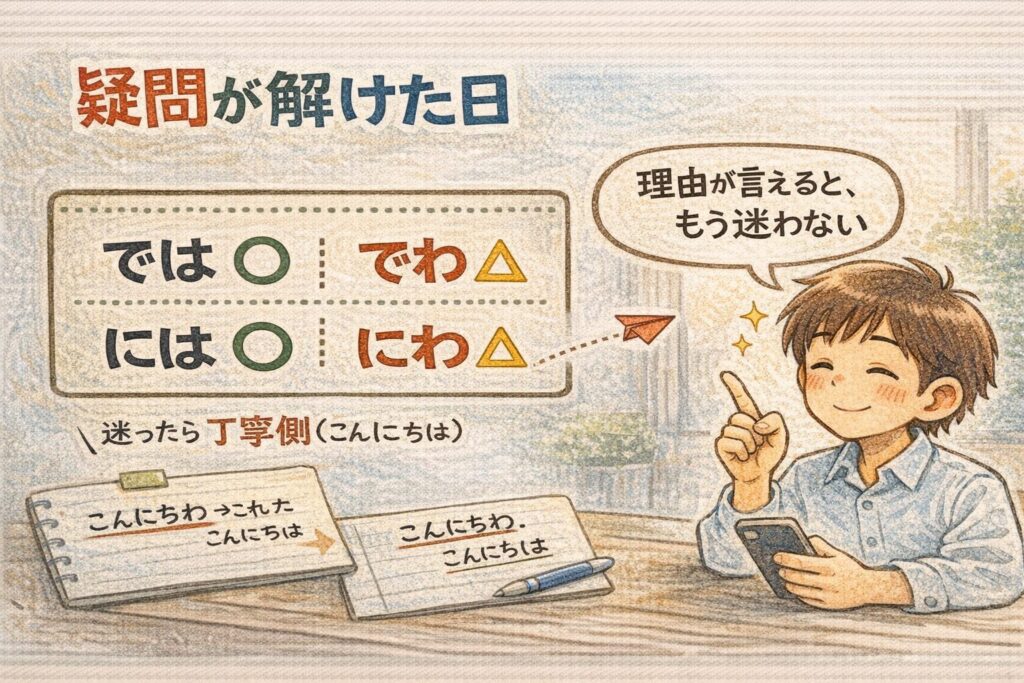 - 「こんにちは」「では」みたいな **“音と文字のズレ”**も、文法の土台があると迷いにくくなります