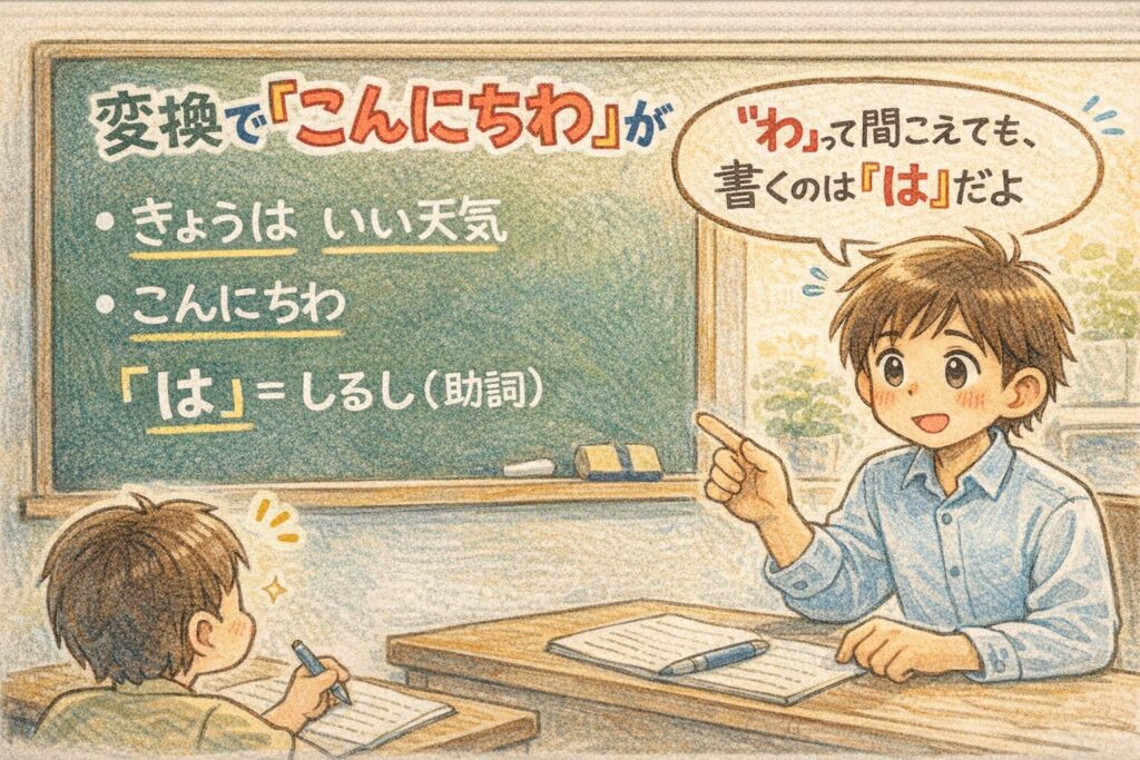 - 子どもの宿題に「こんにちわ」と書いてあって、どう直せばいいか迷う