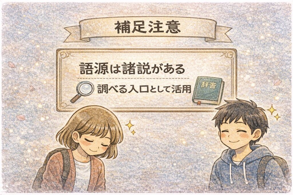 - 語源を“断定しない”正しい見方が身につく(怪しい雑学に振り回されにくい)