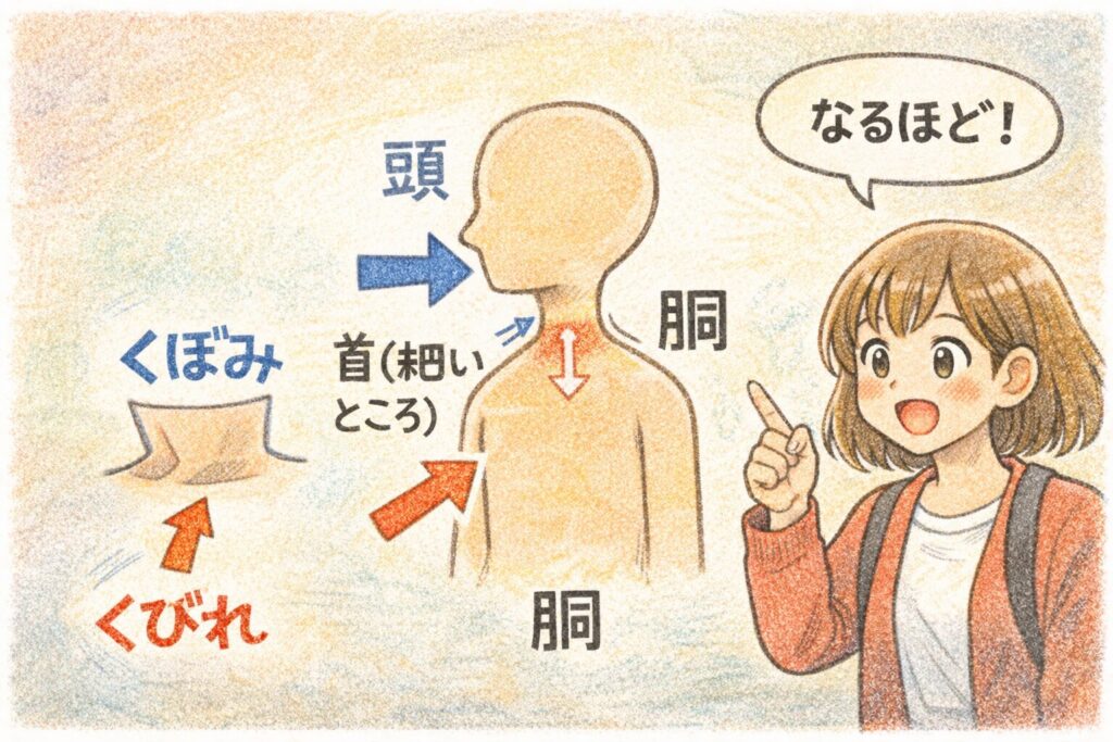 『首(くび)=くぼみ由来』は、
