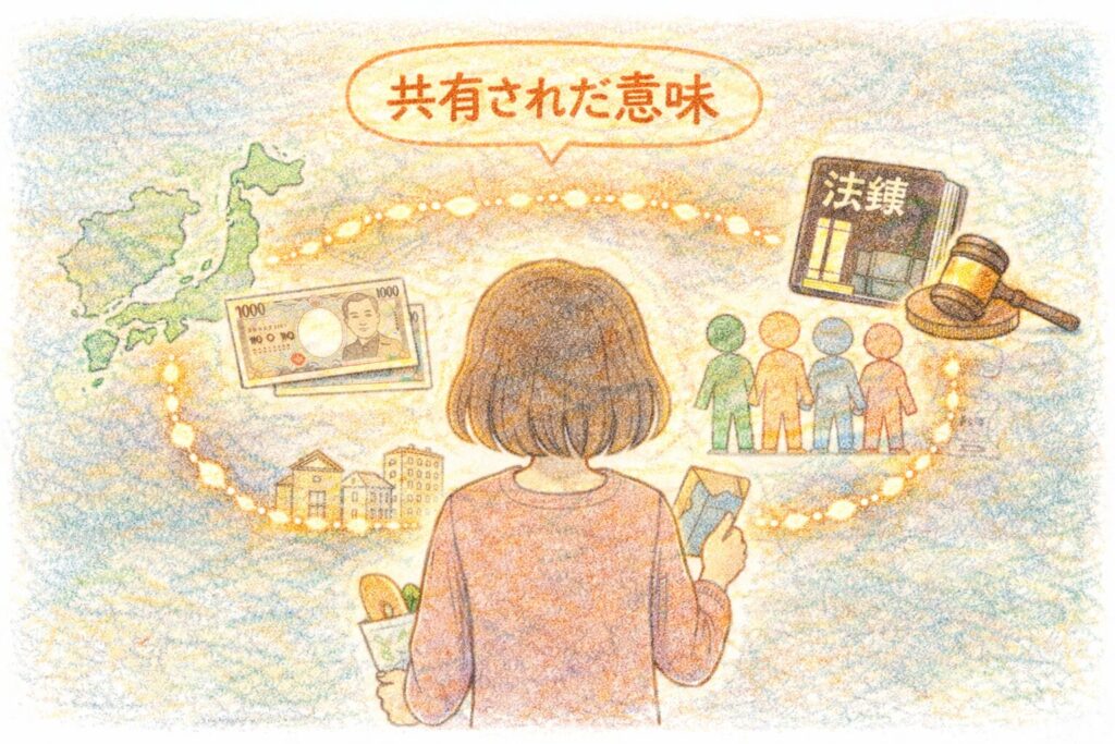 “みんなが当たり前だと思っているもの”の奥にある意味をたどることで、「共同幻想」という言葉は、もっと身近で、もっと奥行きのあるものとして感じられるはずです。