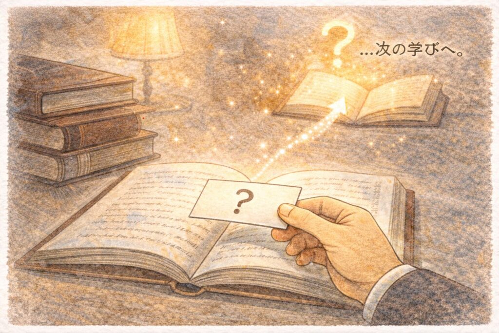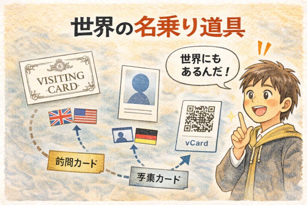 この3冊を押さえると、名刺の話を「マナー」だけでなく「歴史と文化の言葉」として語れるようになります。次は、あなたの興味に合う方向(マナー強化/歴史深掘り)へ進めていきましょう。