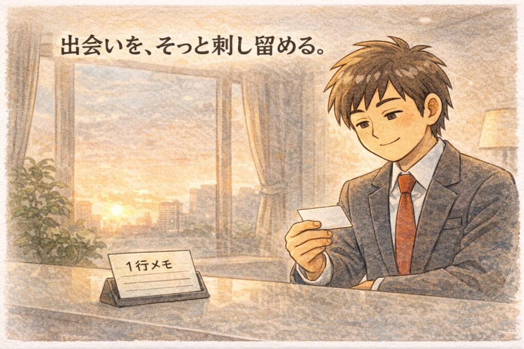 もし今日、机の上の名刺をふと見返す瞬間があったら、思い出してみてください。