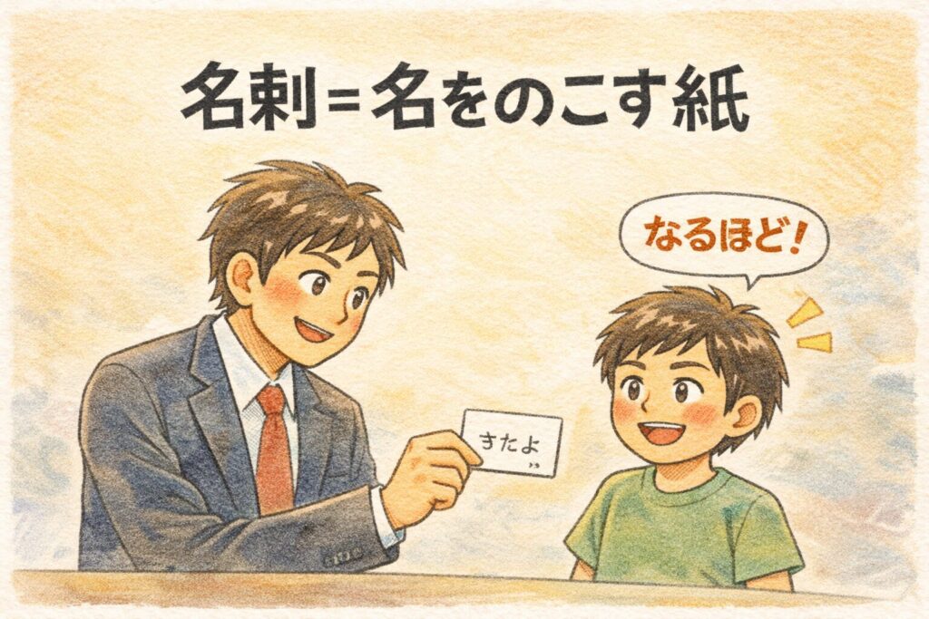 「これ、紙なのに……なんで “名紙(めいし)” じゃなくて “名刺(めいし)” なんだろう?」