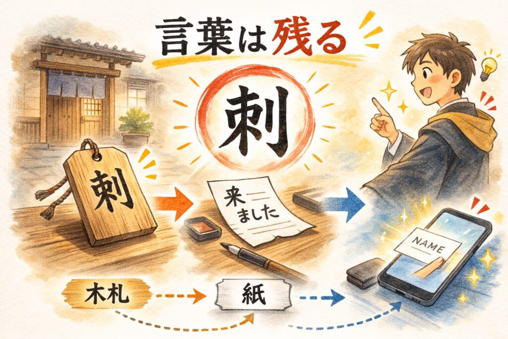 そして「刺」という字には、木や竹の札に名を書いて渡した文化の名残があること。