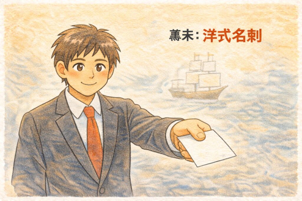 ※ここでいう「遣米使節(けんべいしせつ)」は、江戸幕府がアメリカに送った公式の外交使節団のことです。資料では、この使節団(正副使節など)が米国側との交流の中で名刺を求められたり、名刺を用いたりした記録が紹介されています(ただし「最初かどうか」は、記録の範囲や定義で見え方が変わります)。