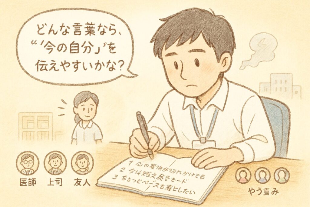 - 信頼できる同僚に「実は今ちょっとしんどくて」と打ち明ける
