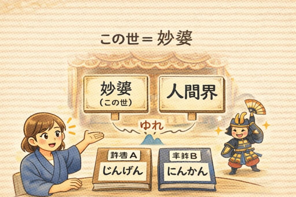 「人間界(この世)」を、仏教語のセットで立体的にできます。
