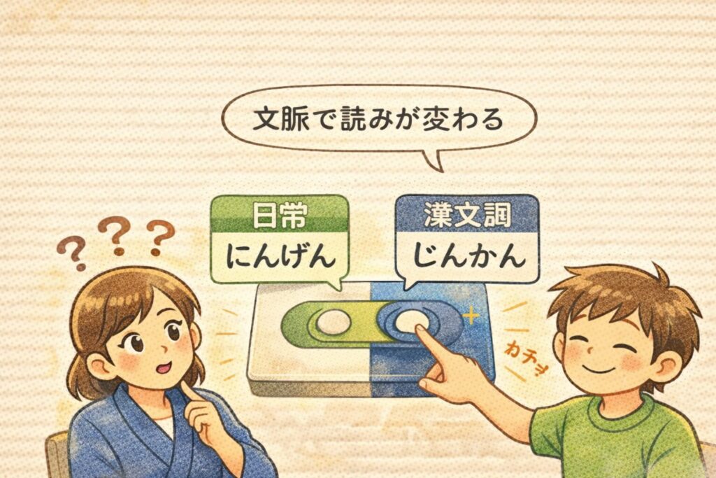 人間(にんげん/じんかん)と同じで、“どの文脈の話か”を先に決めるのが迷いを減らすコツです。