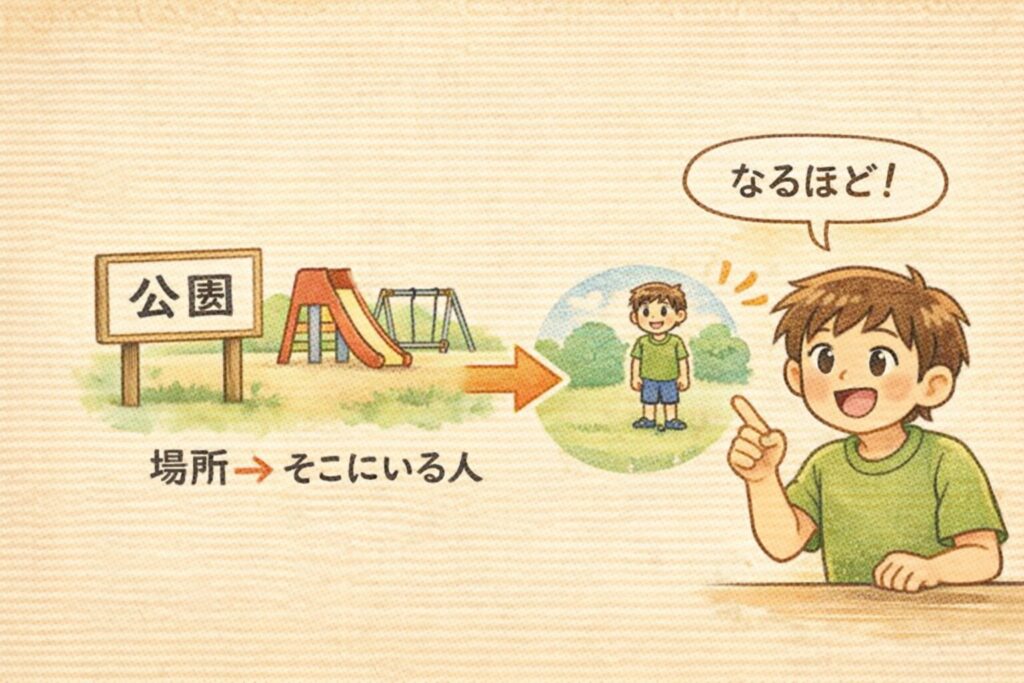 つまり、最初は「公園(場所)」と言っていたのが、
