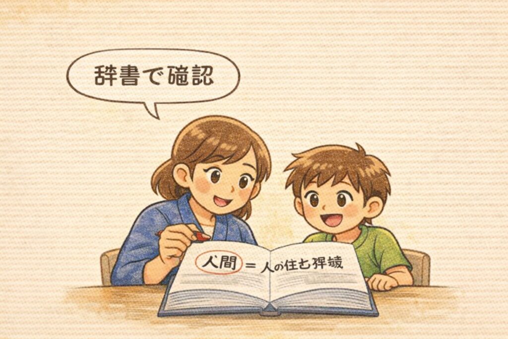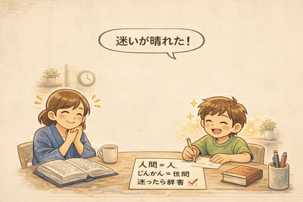 次の日の夕飯のあと、私はスマホで辞書を開きながら、子どものプリントをもう一度見ました。