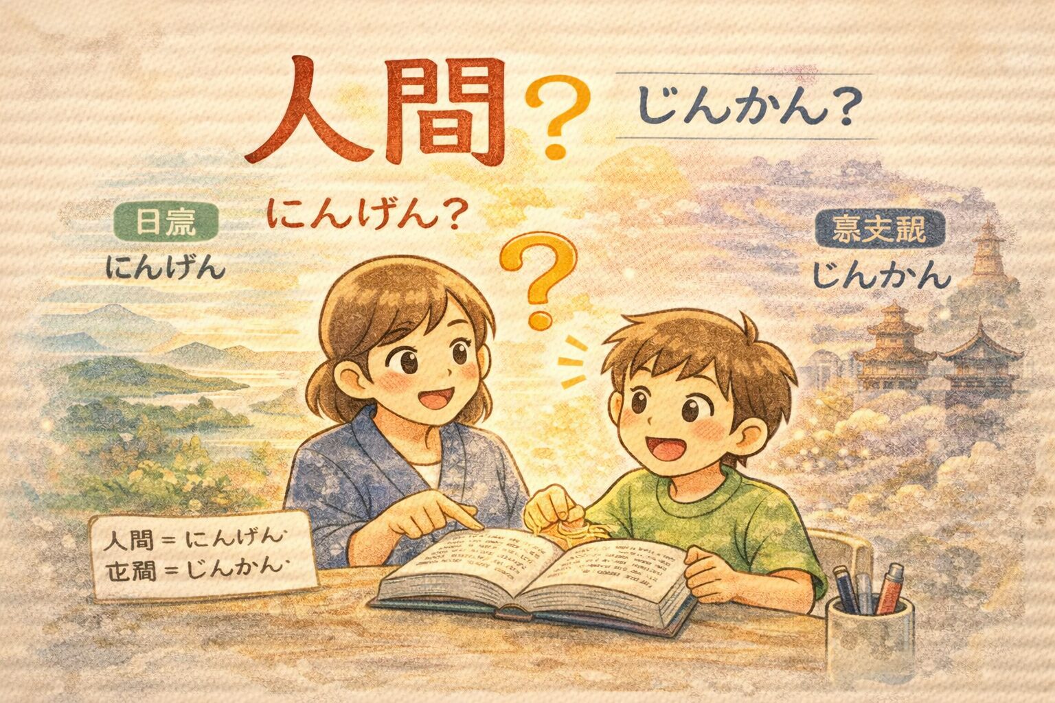 「ねえ、これ、“にんげん”って読むの? “じんかん”って読むの?」