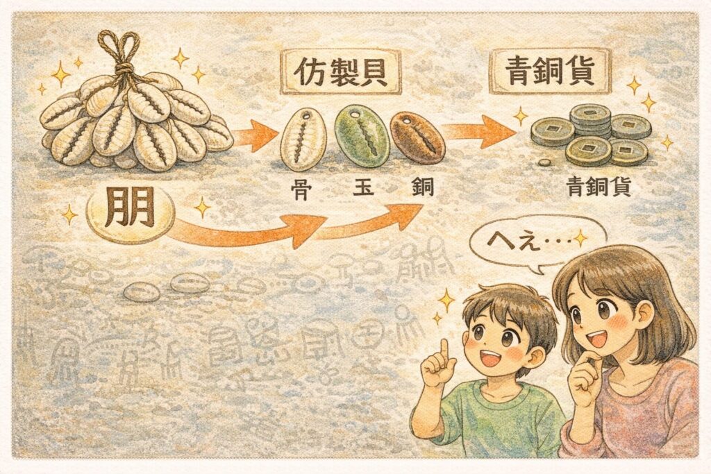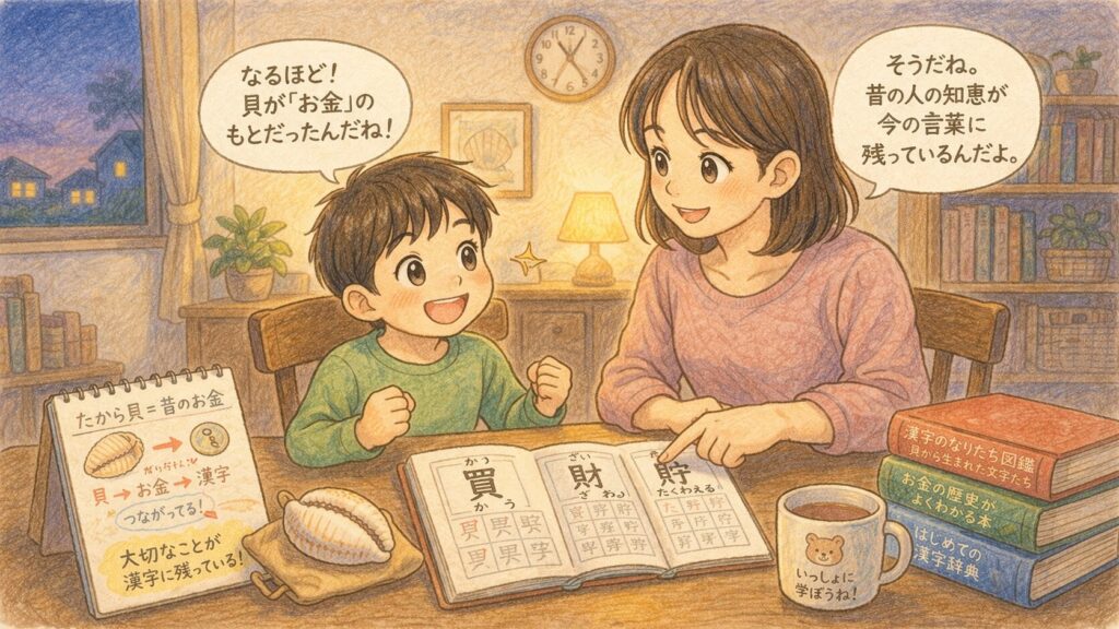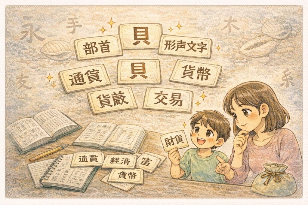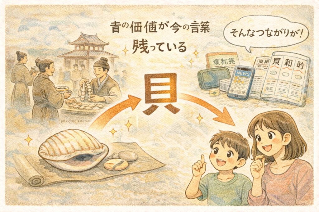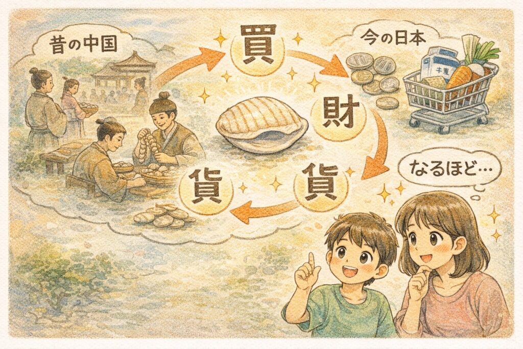 「貝の漢字」から「お金の歴史」まで自然につながります。