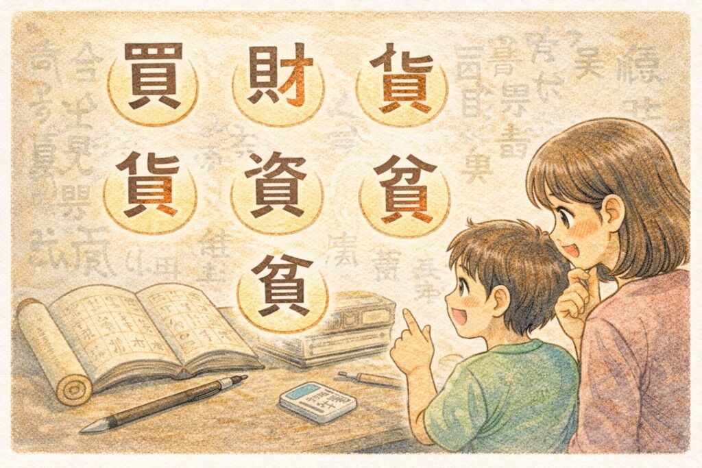 - 家計簿やニュースで**「財政」「消費」「資産」**という言葉を見て、貝の字がやけに多いと感じる