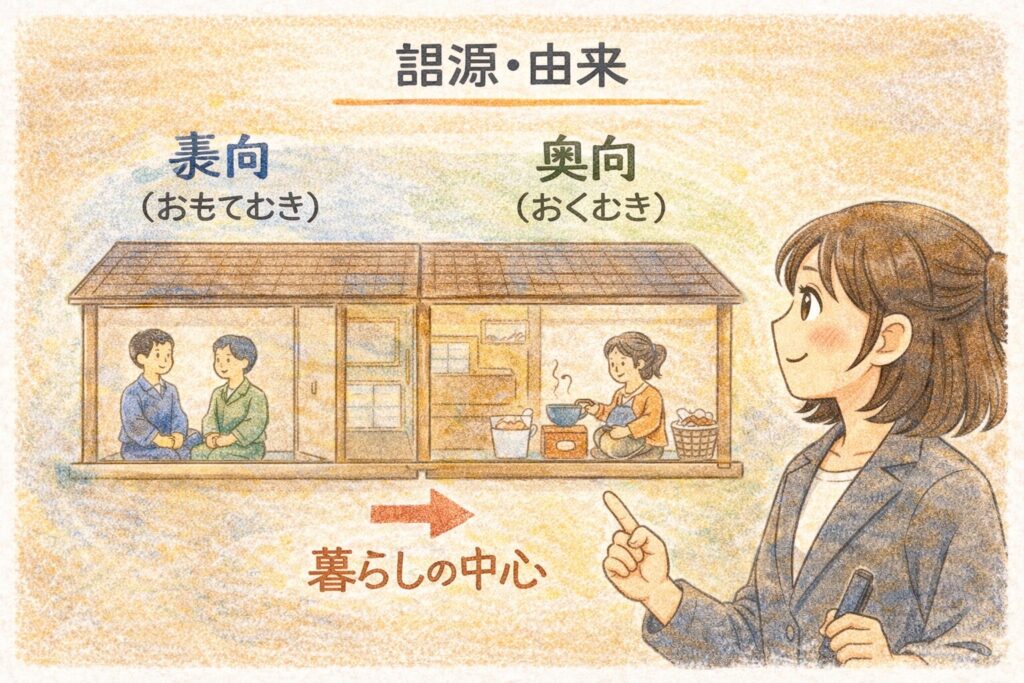 A. 「表(おもて)/奥(おく)」の区別(来客対応の表と、暮らし・家政の奥)が背景にあり、由来として筋は通ります。ただ「武家だけ」と断言するのは強すぎるので注意です。