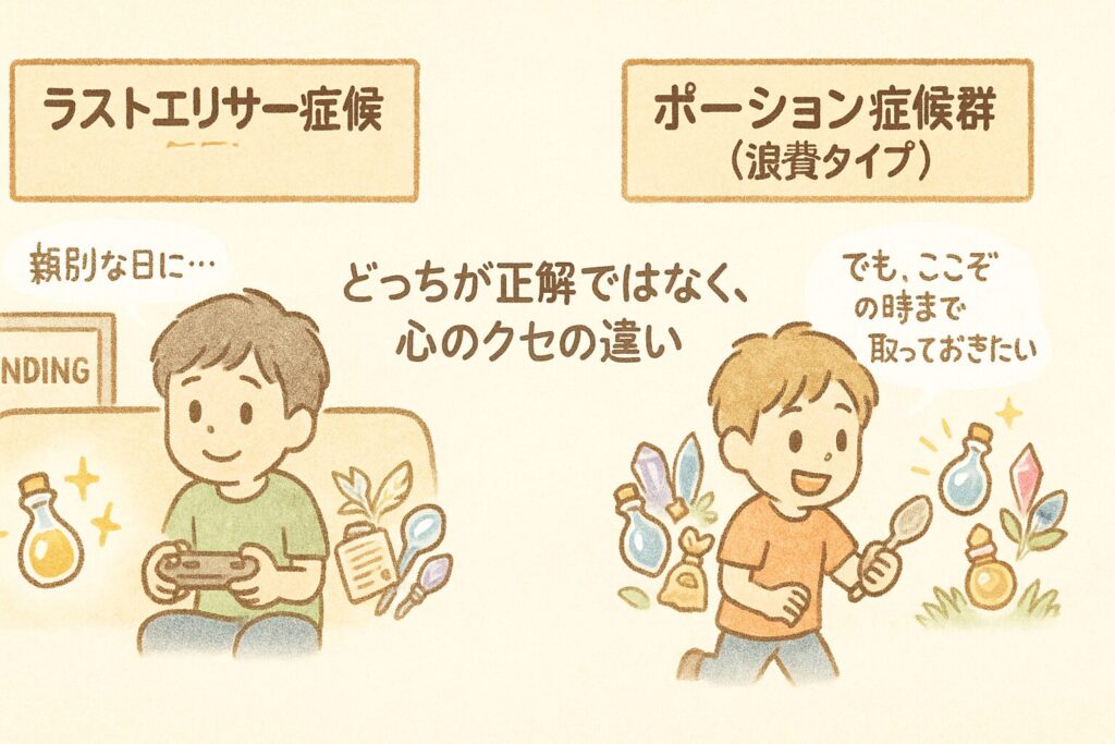 「ラストエリクサー症候群/エリクサー症候群」=使えない・温存タイプ- 本記事での造語: