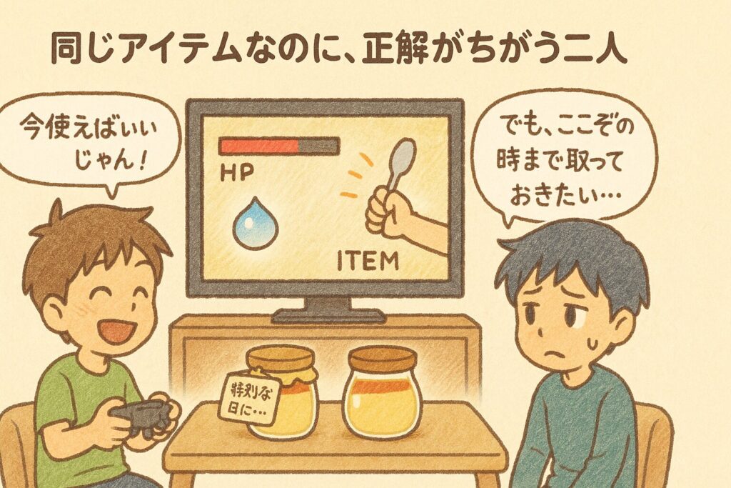 - **「自分はなぜアイテムを温存するのか/すぐ使うのか」**が言葉になる