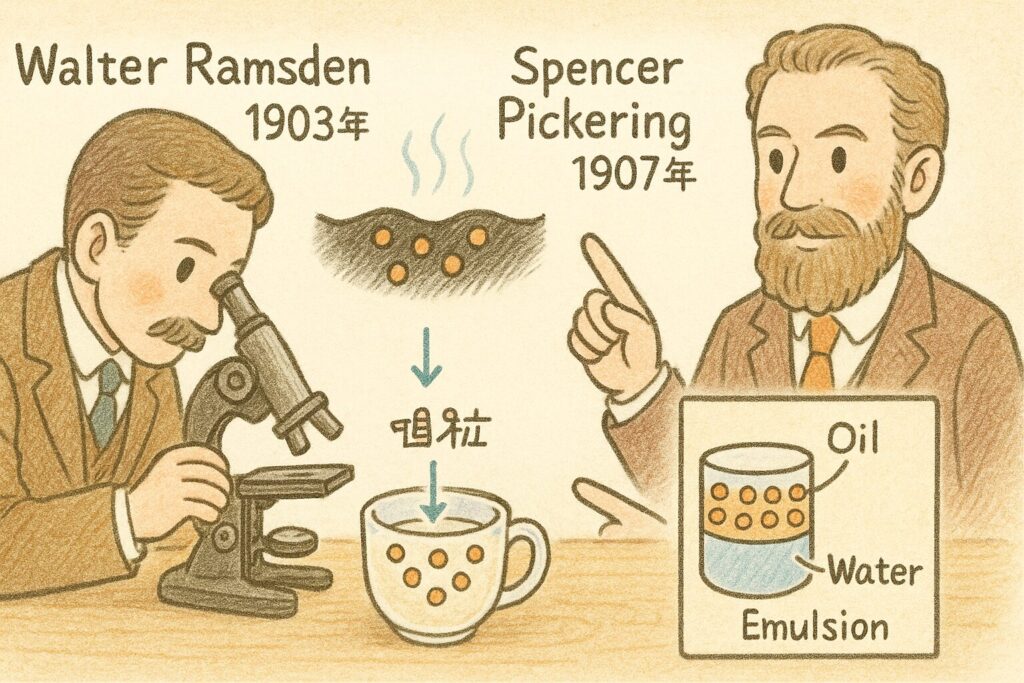 この発見は今でも**ピッカリング・エマルション(Pickering emulsion)**と呼ばれ、