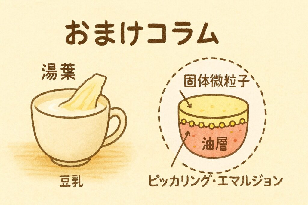 さらに広い視点で見れば、豆乳のゆばや、食品用の食べられる薄膜研究など、界面にできる膜は文化や産業にもつながる現象です。