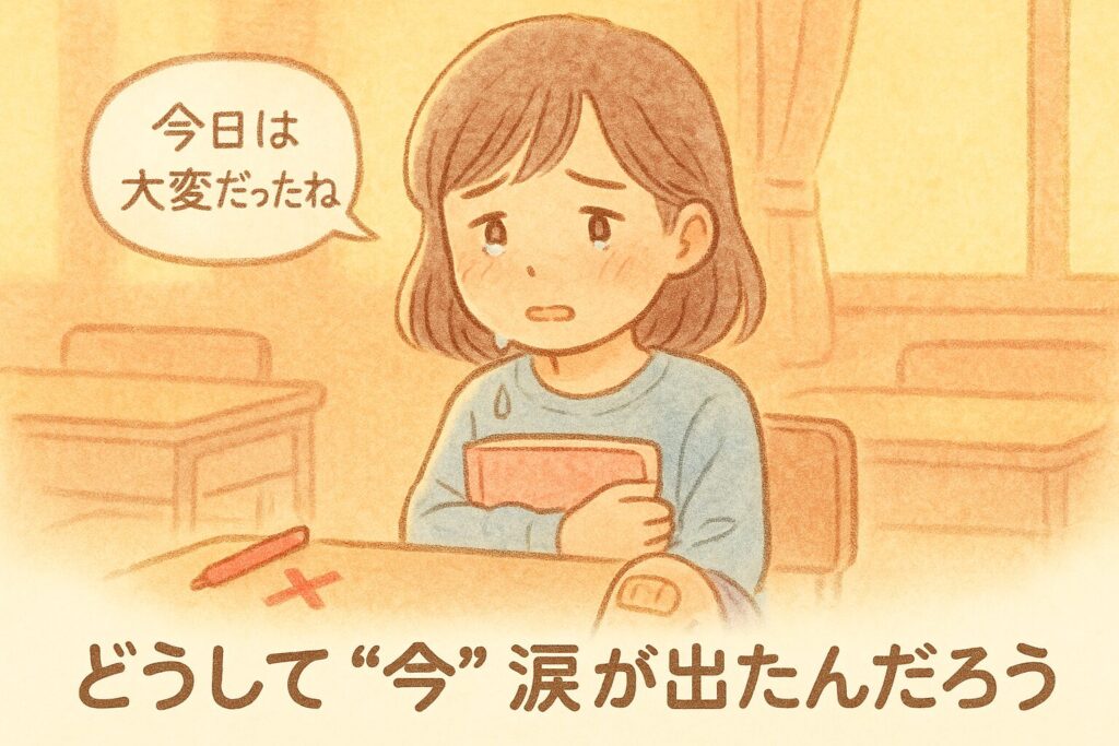- ポイント:優しい言葉は“悪いこと”ではなく、たまたま最後の一滴になっただけ。安心がもたらす緊張の解除も、涙を後押しします。