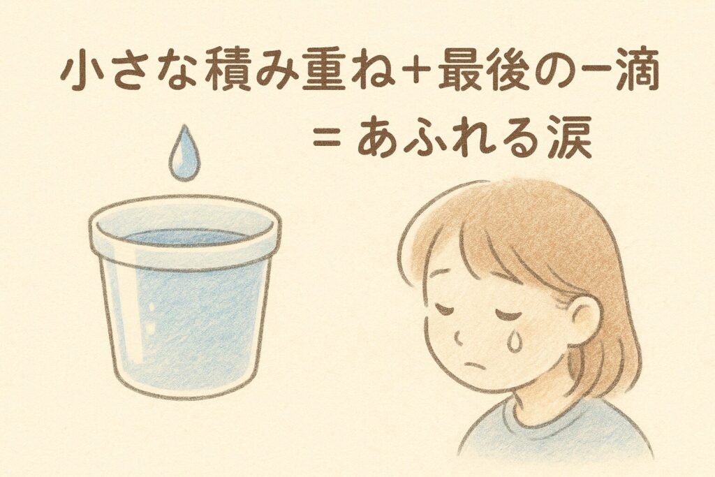 結論:小さなストレスが積み重なり「限界ギリギリ」になった心に、最後のごく小さな出来事(=ラストストロー)が加わると、感情が一気にあふれ出すからです。