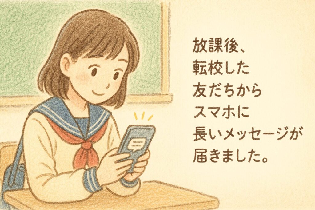 放課後、転校した友だちからスマホに長いメッセージが届きました。