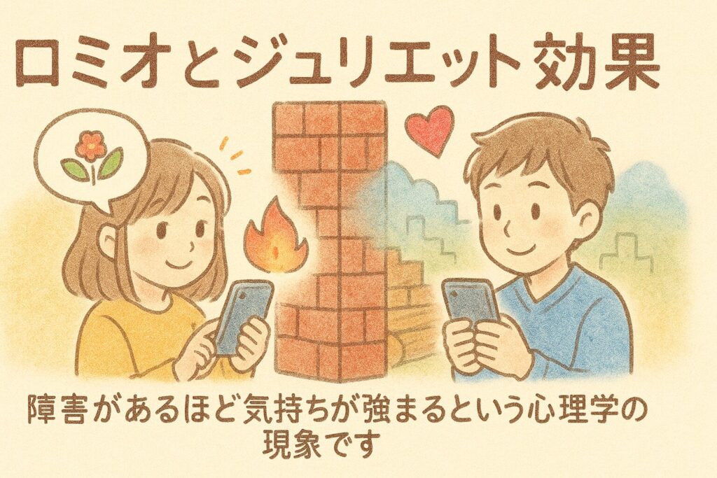 こうした「障害があるほど気持ちが強まる」不思議さを、心理学ではロミオとジュリエット効果と呼ぶことがあります。とくに「親や周囲の反対が強いほど恋心が高まる」という文脈で語られることが多い現象です。