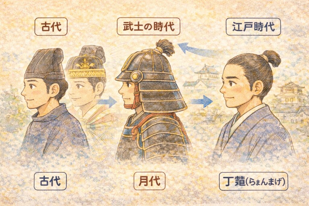 兜・月代・髷の関係から、ちょんまげの意味と理由をやさしく読み解きます。