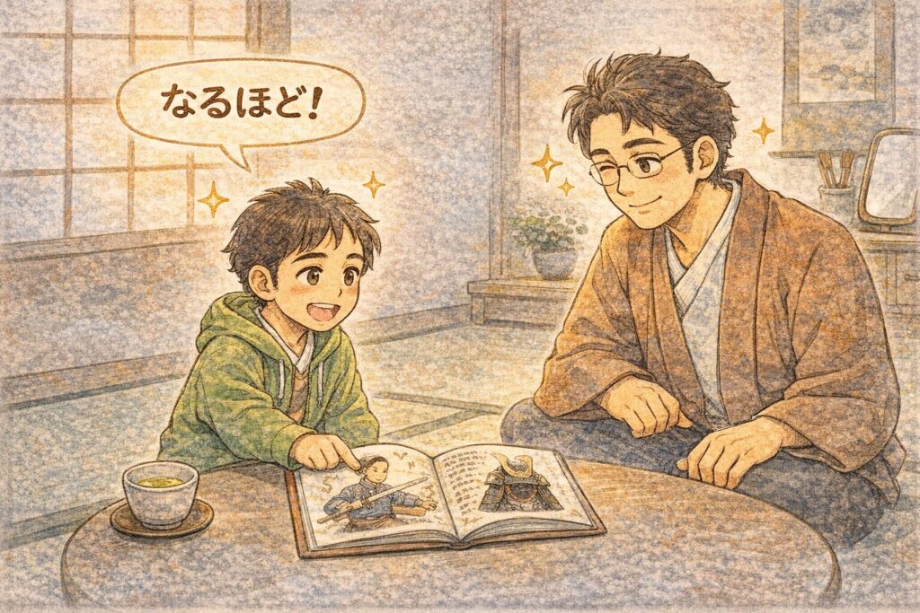 図鑑を閉じた息子は、もう一度さっきの侍の絵を見つめました。