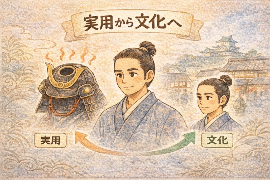 実際、古い時代の髪型は冠や烏帽子と深く結びつき、武士の時代には兜との関係が強くなっていきました。だからこそ、ちょんまげは見た目の奇抜さよりも、頭を守る装備とどう合わせるかという視点で見ると、ぐっと意味が見えてきます。