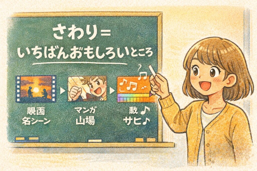 - 「さわり」=“ここが一番おもしろい!”ってところ