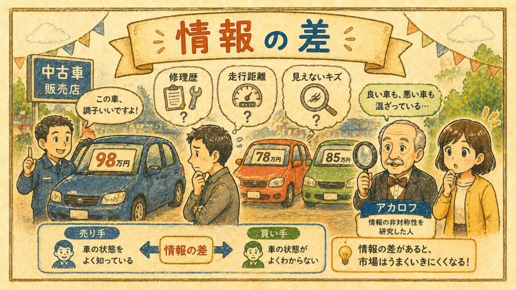 中古品のように、売る人と買う人で知っている情報に差がある。