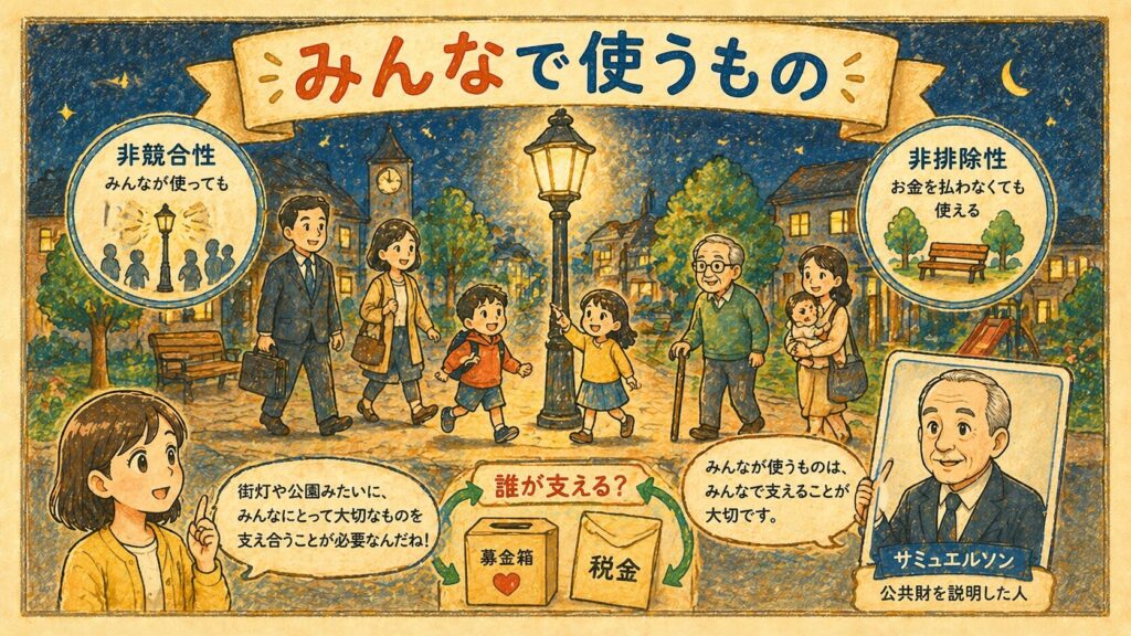 街灯や道路のように、みんなで使うものが市場だけでは作られにくい。