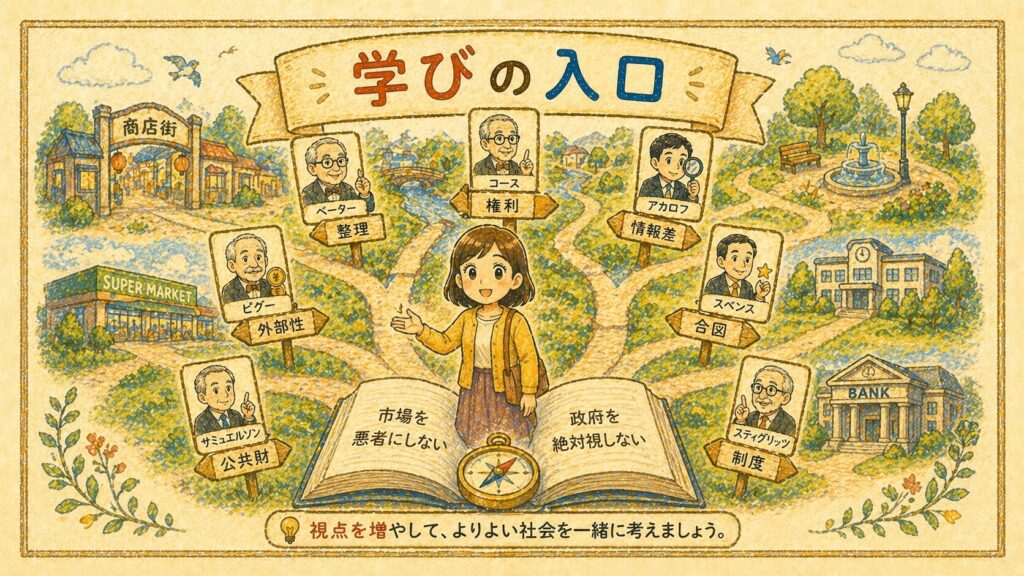 もしこの記事をきっかけに、経済学の偉人たちや市場の失敗に少しでも興味がわいたなら、ぜひ次は本や資料の中へ進んでみてください。