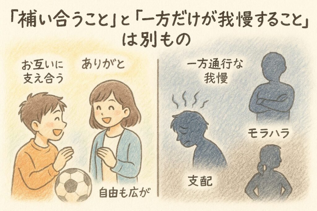 **「違うからこそ、どう補い合えるかを話し合う」**ことが大事