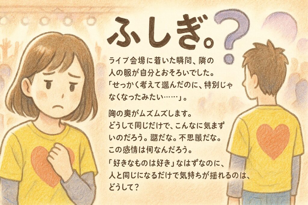 ライブ会場に着いた瞬間、隣の人の服が自分とおそろいでした。