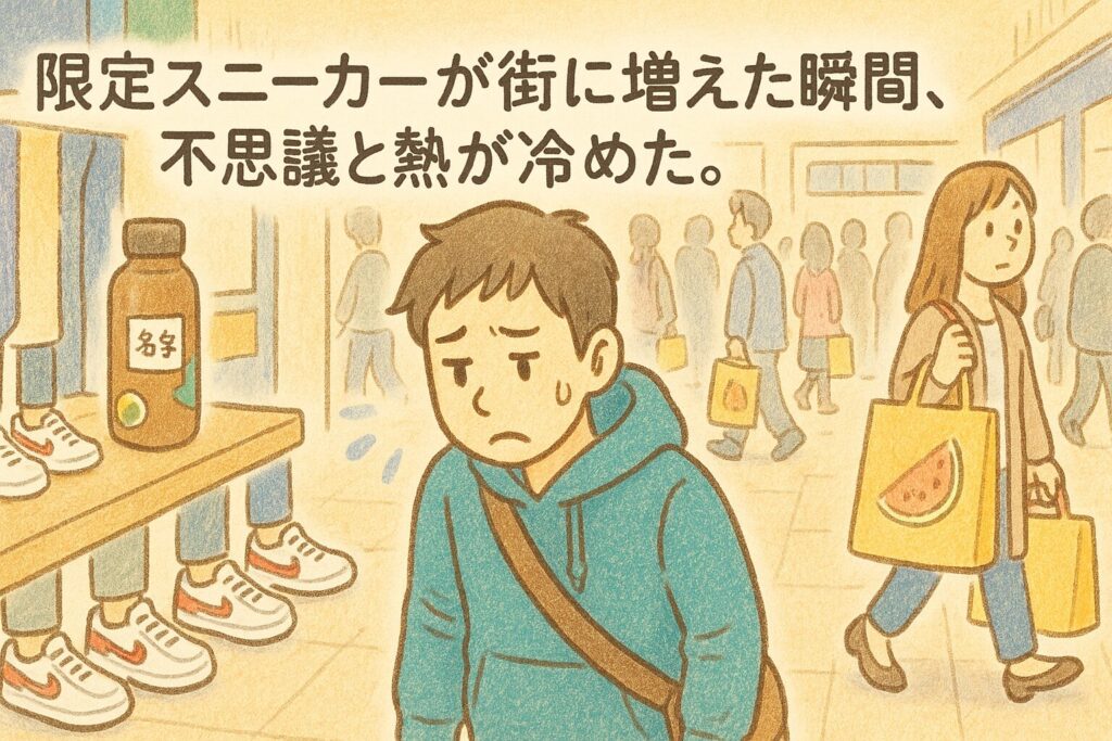 - 限定スニーカーが街に増えた瞬間、不思議と熱が冷めた。