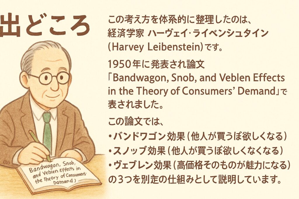 (バンドワゴン・スノッブ・ヴェブレン効果と消費者需要の理論)で示されました。