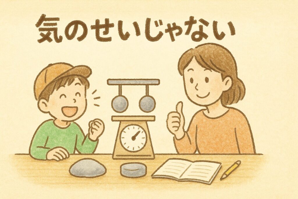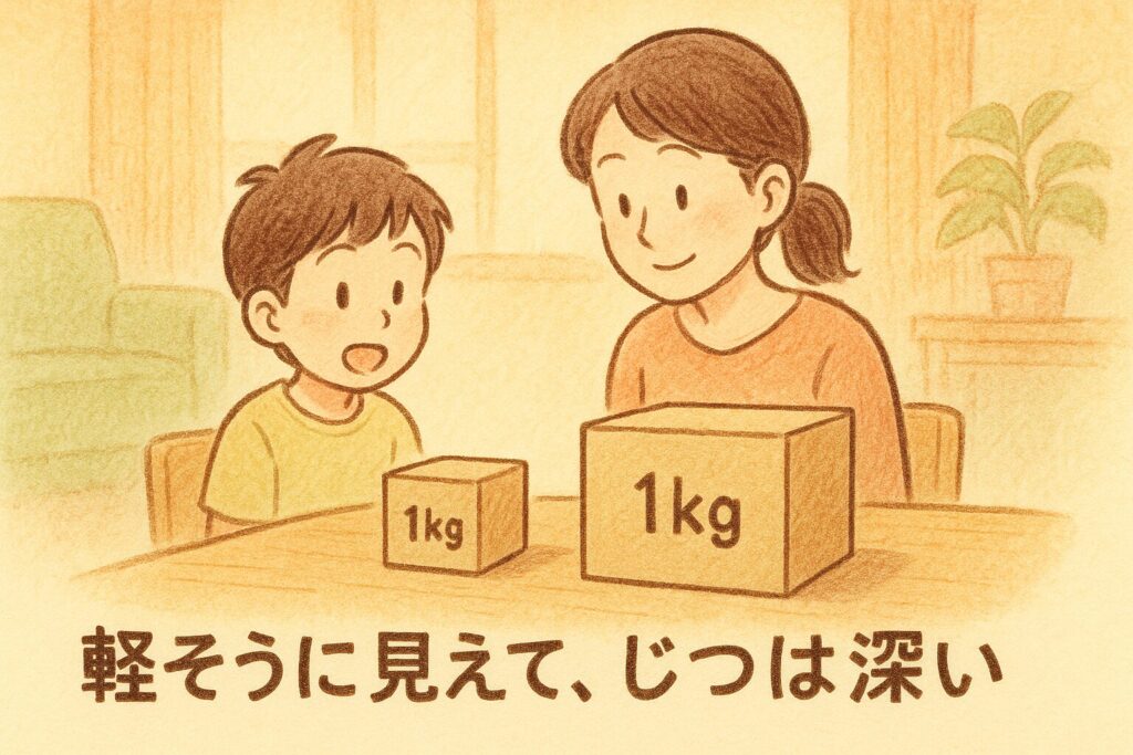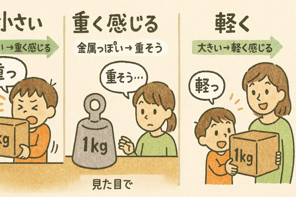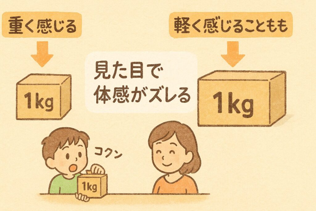 - 見た目の大きさが違うと、脳が先に「重さ」を予想します