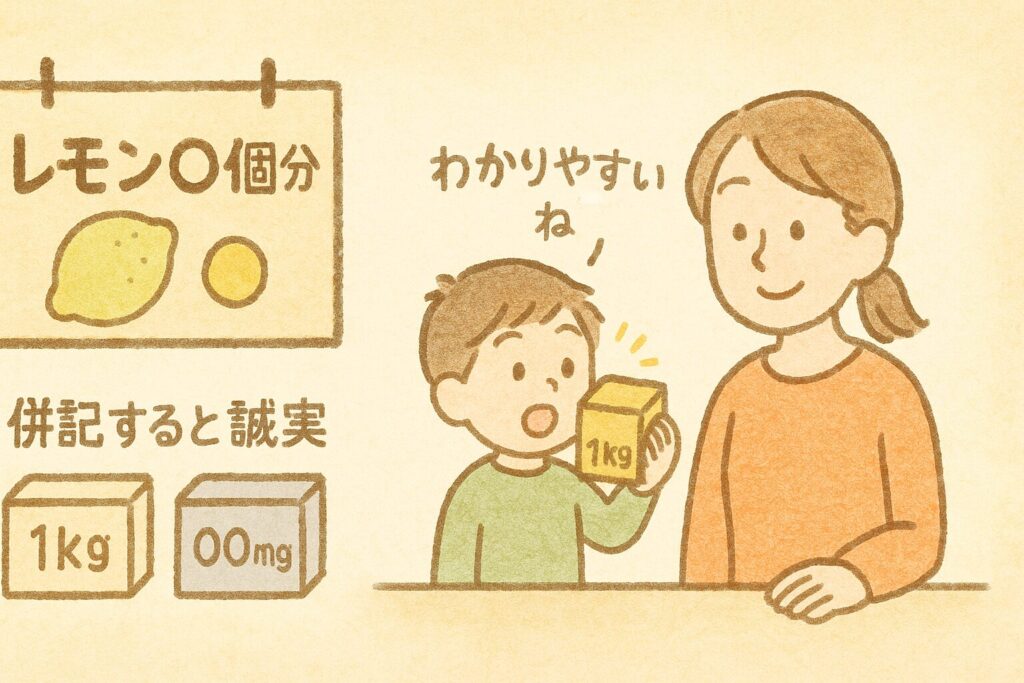 持った瞬間に拍子抜けする - 「レモン○個分のビタミンC」みたいに、