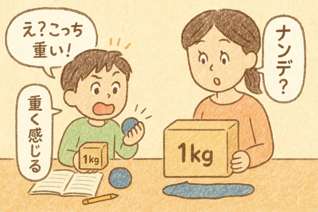**小さいほうを“思ったより重い”**と感じやすくなるんです。