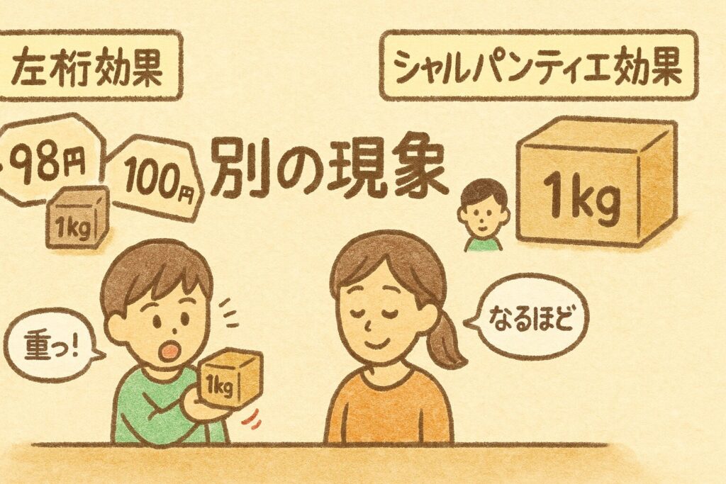 ※よく「98円が安く見える」現象と混同されますが、