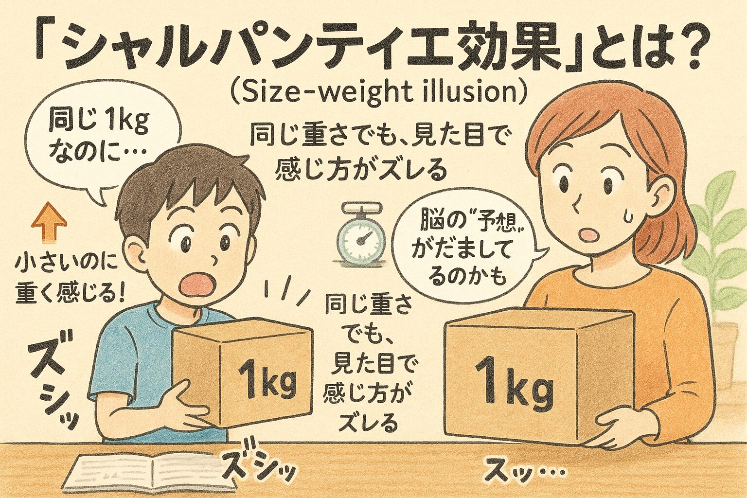 同じ重さなのに、なぜ小さい方が重い?『シャルパンティエ効果(大きさ‐重さの錯覚)』を理解