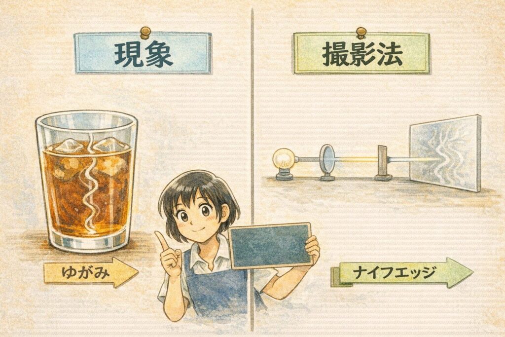 - さらに読み進めれば、見えにくい差をくっきり見せる**シュリーレン法(シュリーレン撮影)**の考え方(ナイフエッジ等)までつながります