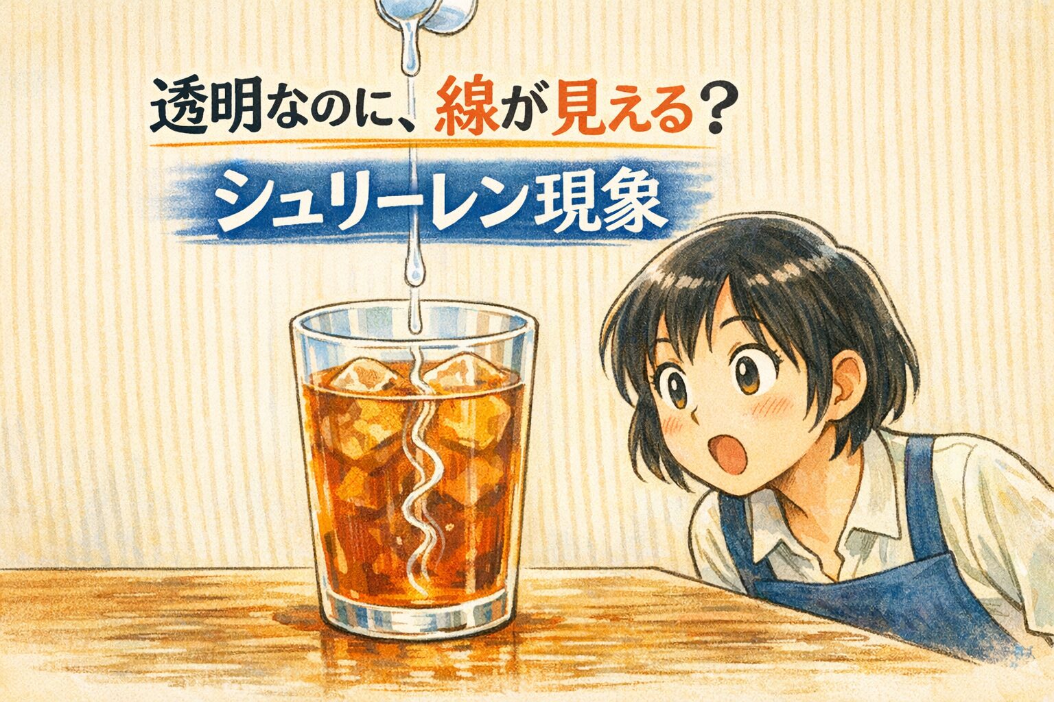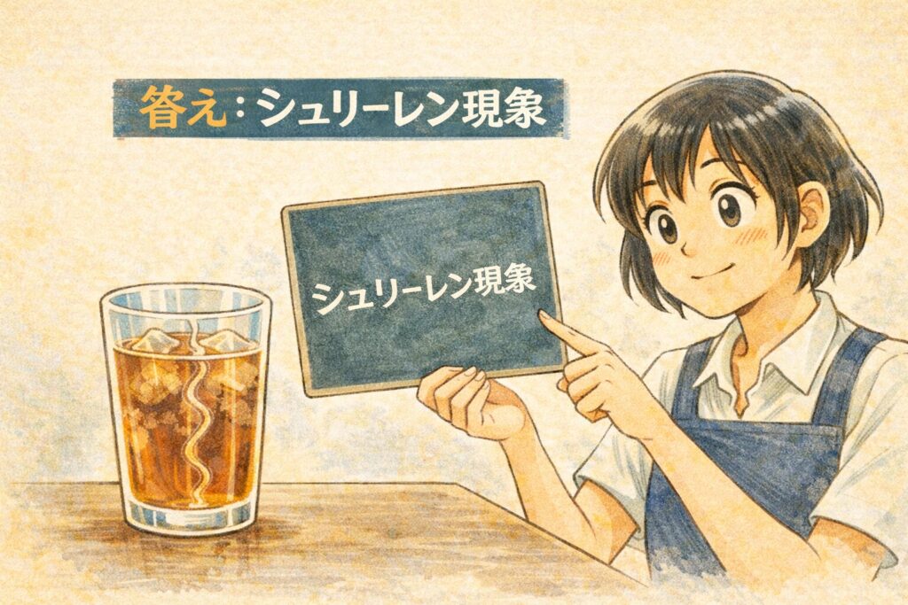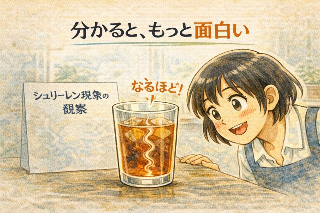 アイスティーにガムシロを入れたときに見える「透明な線」も、同じ仕組みで説明できるようになります。