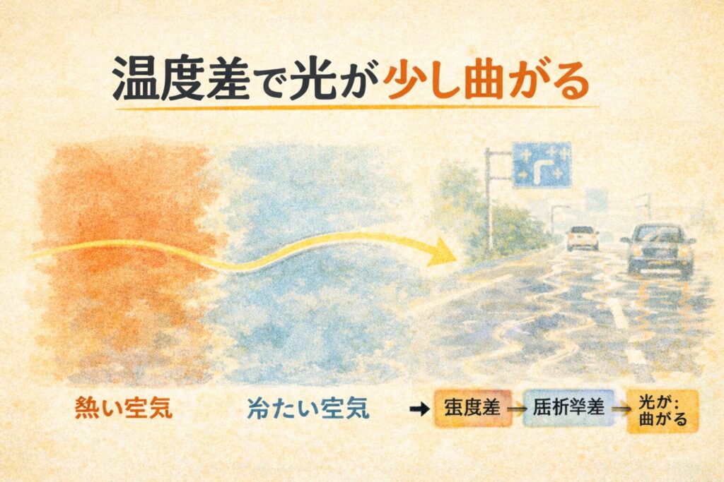 あれは実は、空気の“温度のむら”がつくる見え方の変化なんです。